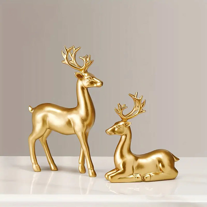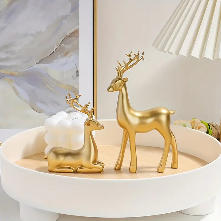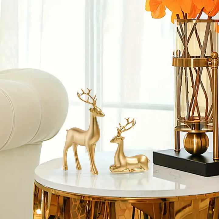 2 PIECE GOLDEN DEER FIGURINE SET – PERFECT DECOR FOR LIVING ROOM & BEDROOM