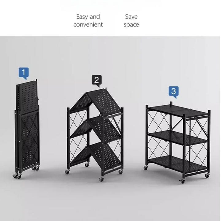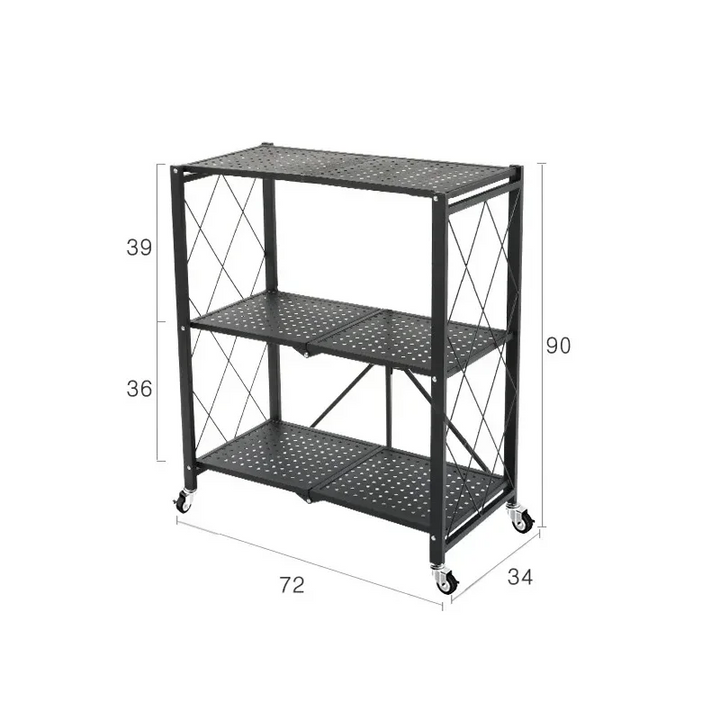 3 LAYER FOLDABLE METAL STORAGE SHELVES MULTIFUNCTIONAL KITCHEN LIVING ROOM RACK