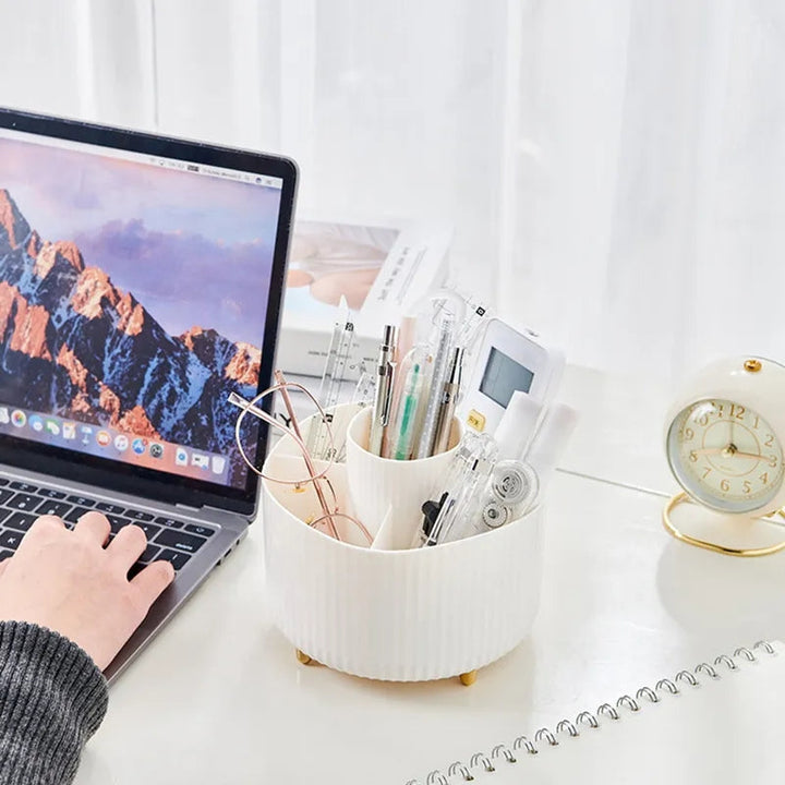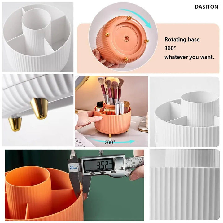 Effortlessly organize your makeup essentials with the 360° Rotating Cosmetic Brush Organizer. The rotating design provides easy access to all your brushes, while its sturdy construction ensures long-lasting use. Keep your vanity clutter-free and save time getting ready in the morning with this must-have organizer.