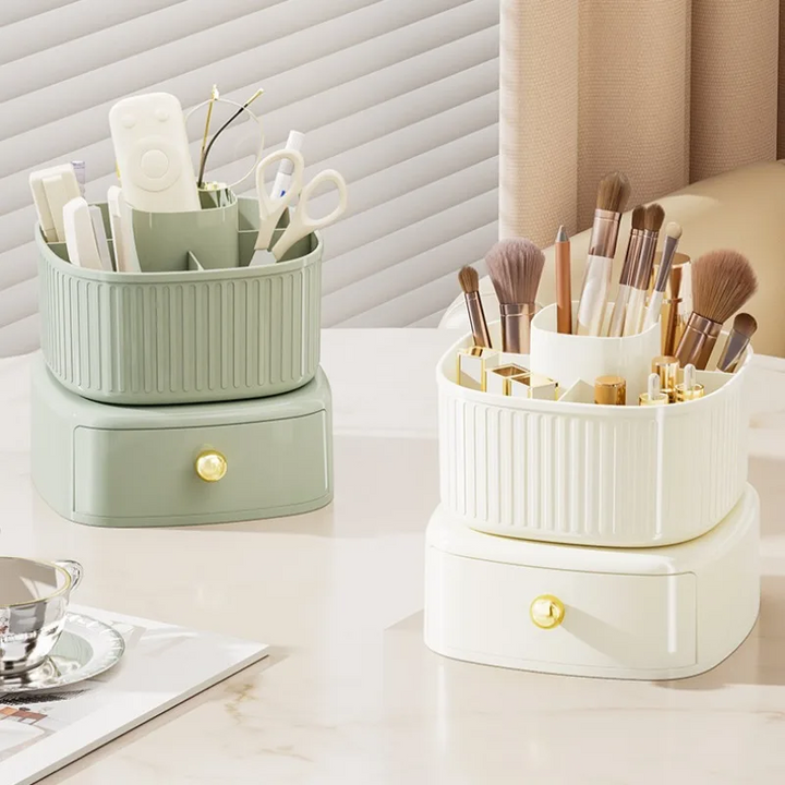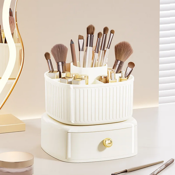 360° ROTATING MAKEUP BRUSH BOX WITH DRAWER ORGANIZER FOR VANITY