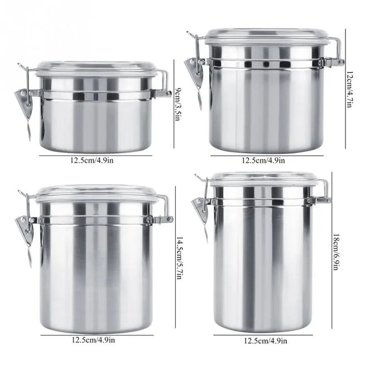 Upgrade your kitchen with our 4-piece stainless steel jar set. Constructed from durable stainless steel, these jars are perfect for storing spices, grains, and more. With a sleek design and high-quality materials, these jars are a must-have for any home cook or professional chef.