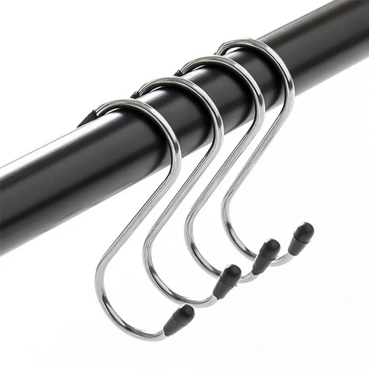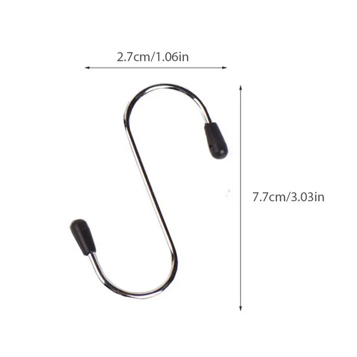 Efficiently organize your home with MULTIFUNCTIONAL S-SHAPED STAINLESS STEEL HOOKS. This versatile set can be used in the kitchen, bathroom, and for storage purposes. Made of durable stainless steel, these hooks provide a secure and space-saving solution.