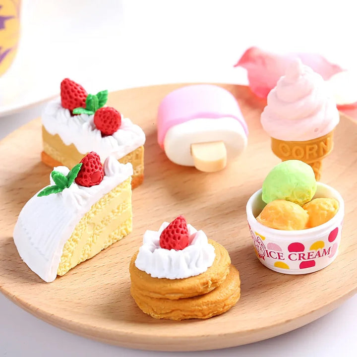 This pack includes 6 food-shaped erasers, perfect for students and office workers alike. Made with high-quality materials, these erasers effectively erase mistakes without leaving any residue. Keep your workspace tidy and playful with these fun food erasers.