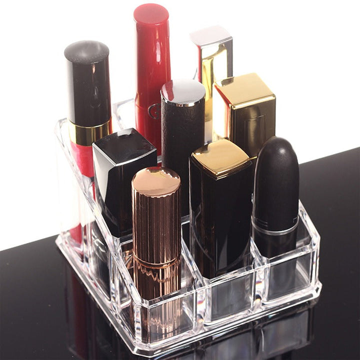 Organize your lipstick collection with ease using our 9-grid lipstick organizer. Designed for convenience and efficiency, this organizer can save you time and reduce clutter on your vanity. Keep your lipsticks in one place and easily accessible with our functional and stylish organizer.