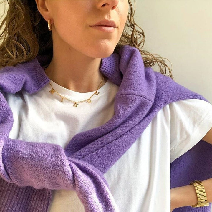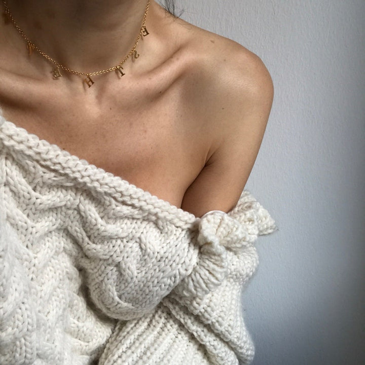 Dainty Classic Letters Charm Dangle Choker Necklace. Bridesmaids women gifts with minimalist, simple elegant summer layering jewelry. Free shipping - customized gifting.