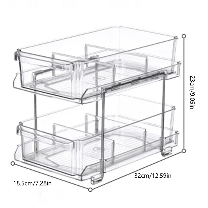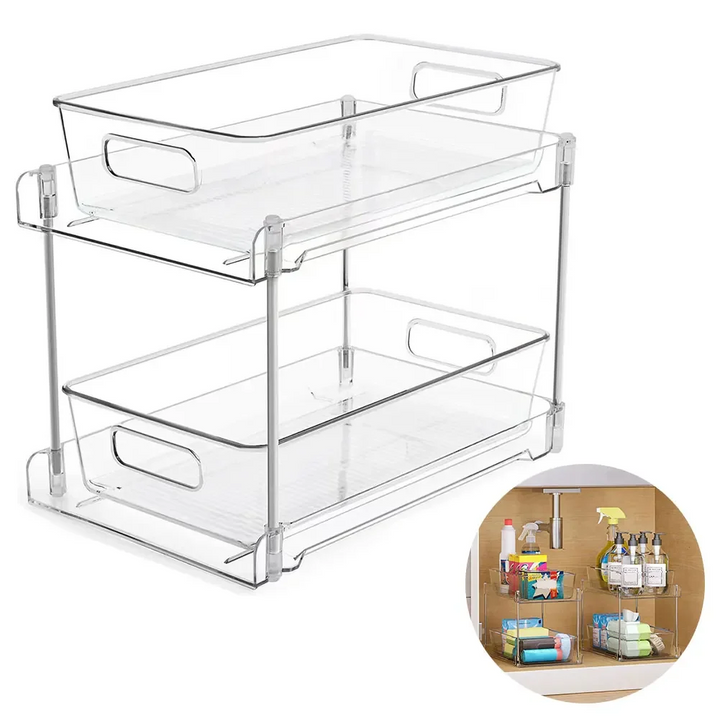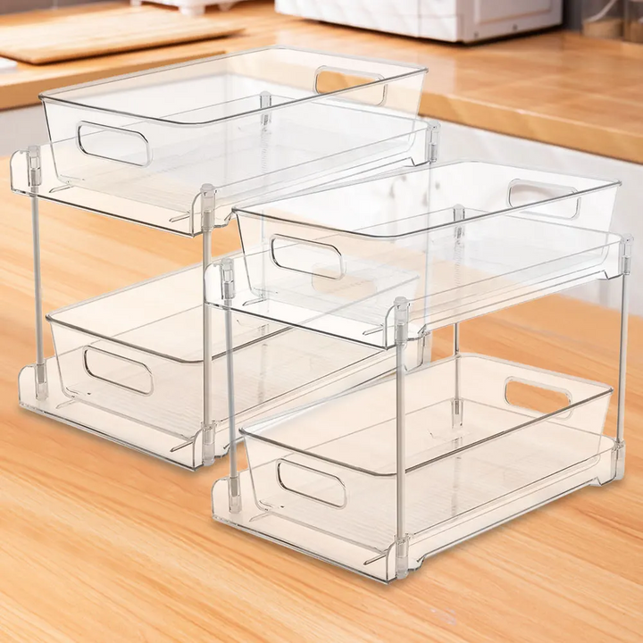 ACRYLIC CLEAR PULL-OUT STORAGE ORGANIZER COSMETIC & FOOD STORAGE - 2 TIER