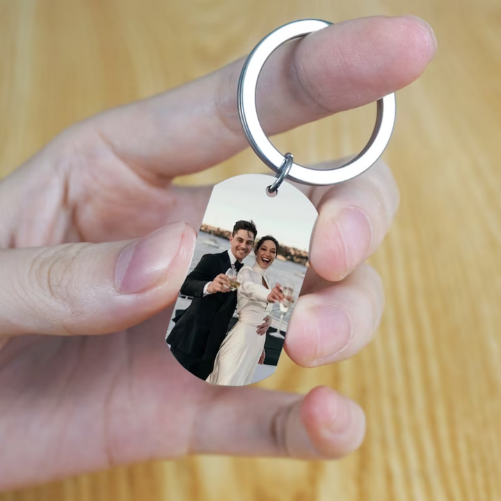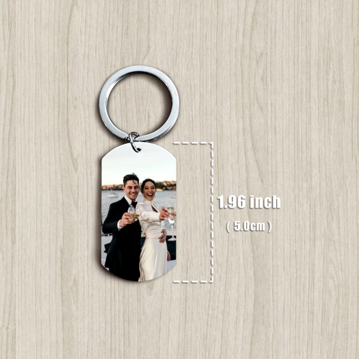 The Custom Picture Keychain is a thoughtful and personalized gift that will make a lasting impression. Made from sturdy, yet lightweight stainless steel, this keychain measures 0.9' x 1.96' (excluding the key ring).