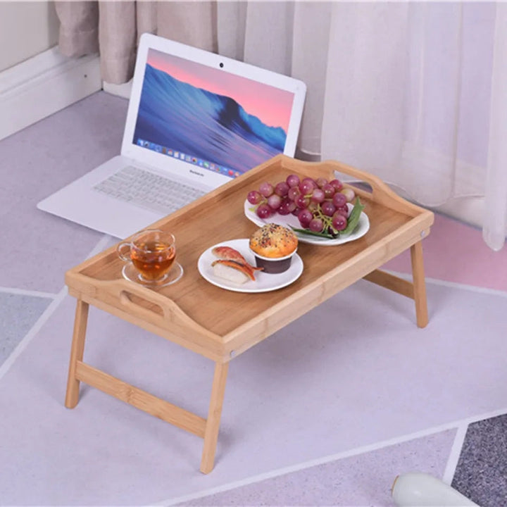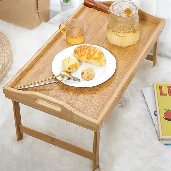 Expertly crafted from sustainable bamboo, this bed table tray is the perfect addition to your nighttime routine. The bamboo material is not only durable and environmentally friendly, but also provides a sleek and stylish design. With this tray, you can comfortably work or enjoy a meal in bed, making it a versatile and convenient accessory.
