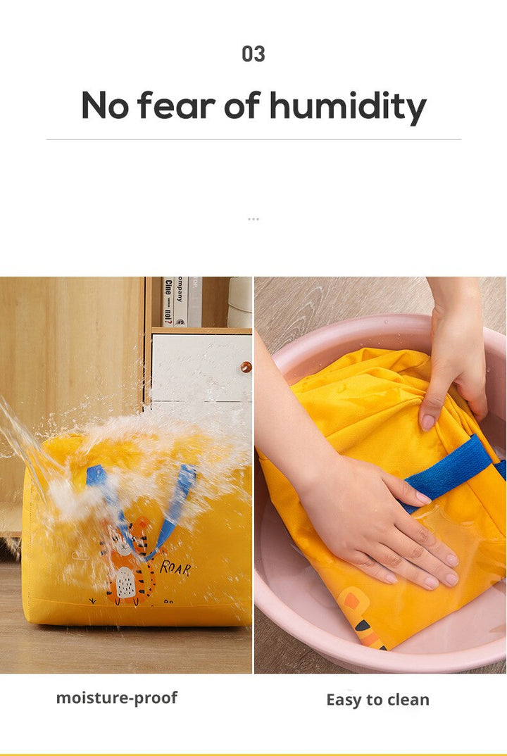 This storage bag features cartoon prints that will add a fun touch to any room. With its spacious interior, it offers plenty of room for storing toys, clothes, or other belongings. Made of durable material, it is built to last and keep everything organized. Upgrade your storage solution with this playful and practical bag.