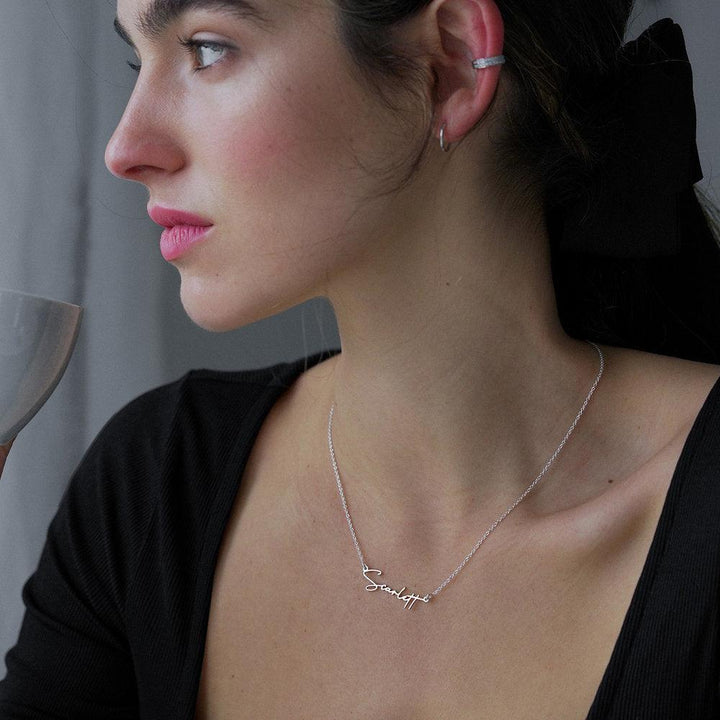 Chic script font to spell out a word or name of your choice. A signature piece that's all your own, this piece will help you create your own curated look.