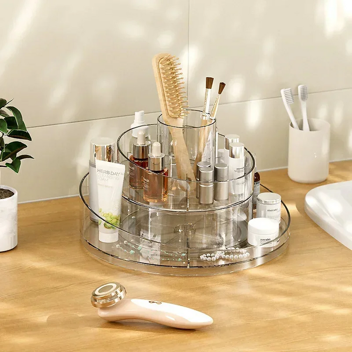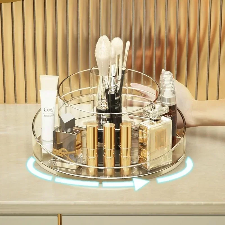 COSMETIC STORAGE BOX, LARGE CAPACITY, 360° ROTATABLE, MAKEUP BRUSH ORGANIZER.