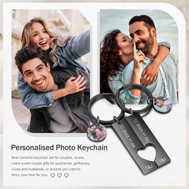 Custom Matching Keychain, Couple Keychain with Photo, Engraved Keychain, Valentine's Day Gift for Boyfriend Girlfriend, Couple Keychain Set