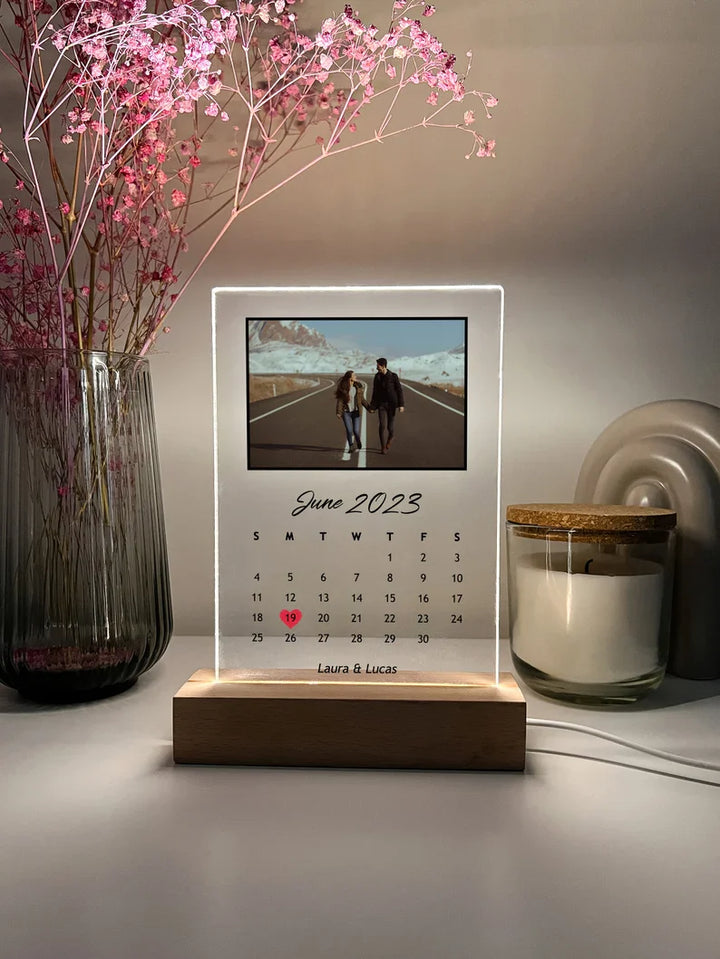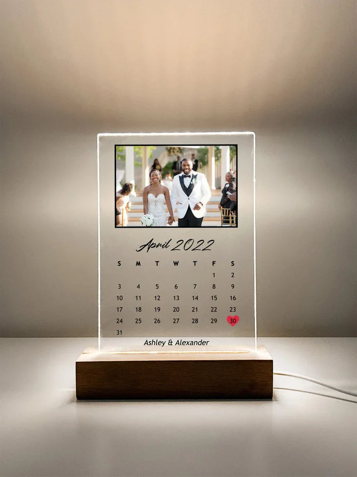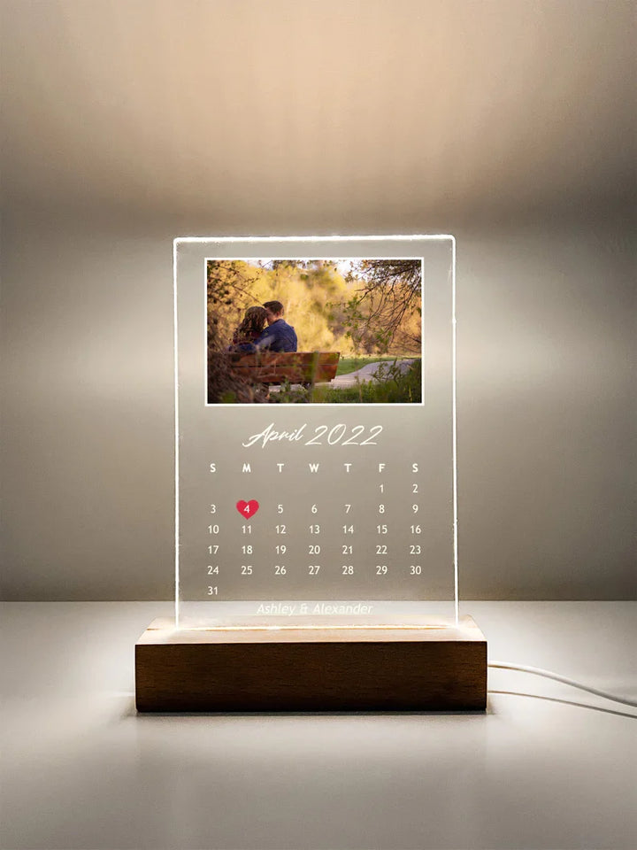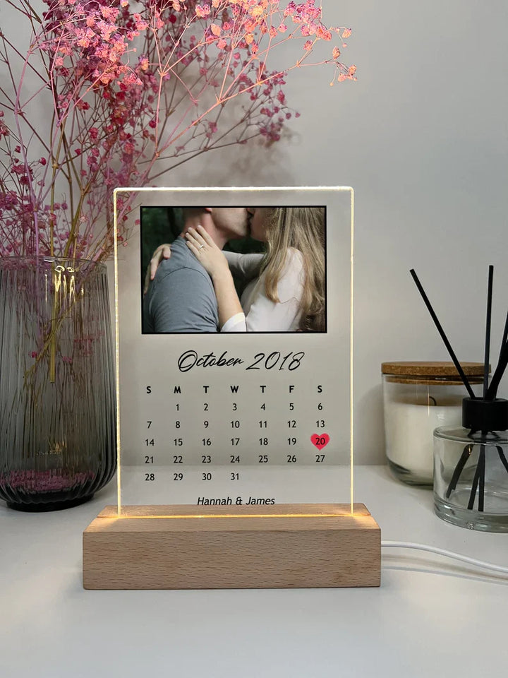Custom Personalized Night Light Photo Picture LED Light Stand Anniversary Wedding Couples Friends Family Calendar Date Month Memories Gifts