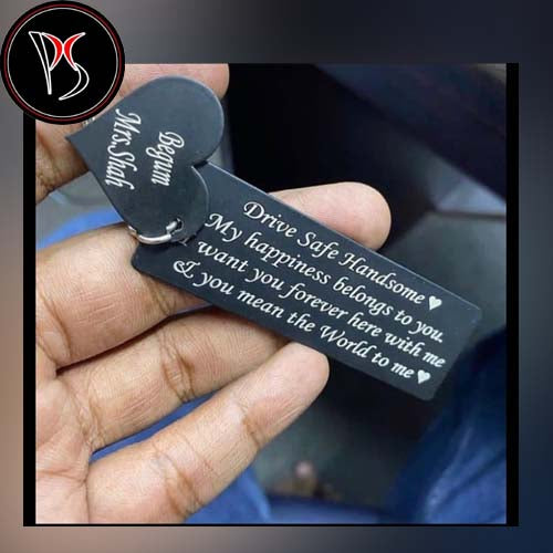 Customized Name & Logo Stainless Steel Car Key Chain - Name & Logo Engrave Rectangular Shape Motor Key Chain- Customized Stainless Steel Metallic Keychain - Car Key Ring