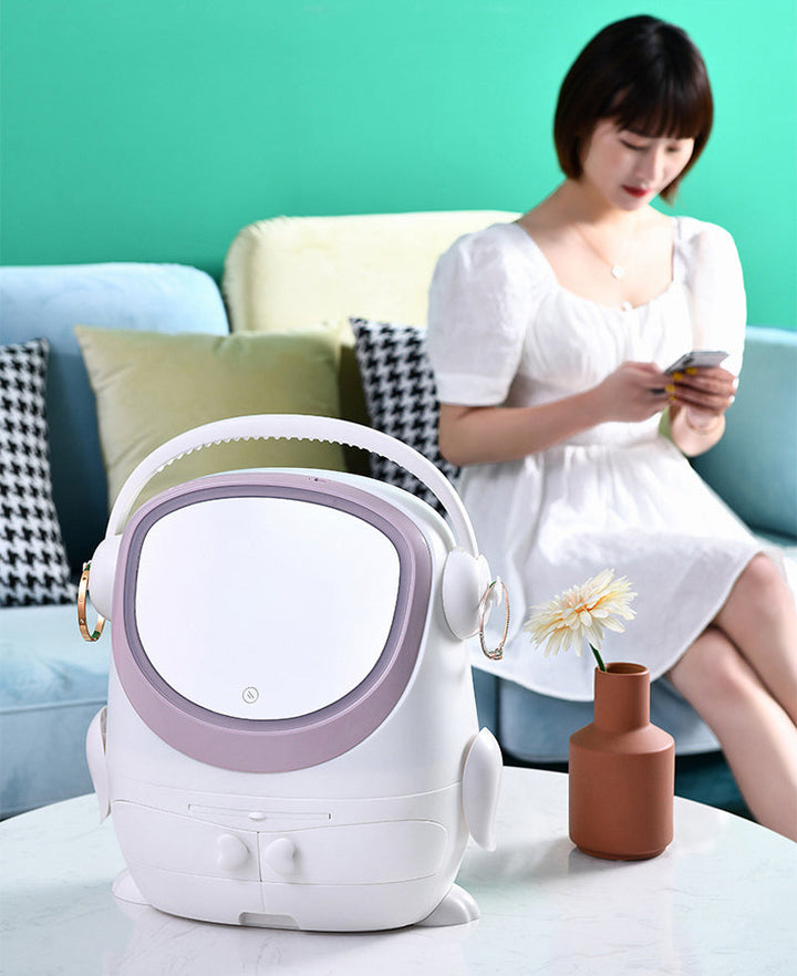 DESKTOP COSMETIC STORAGE BOX WITH LED MIRROR