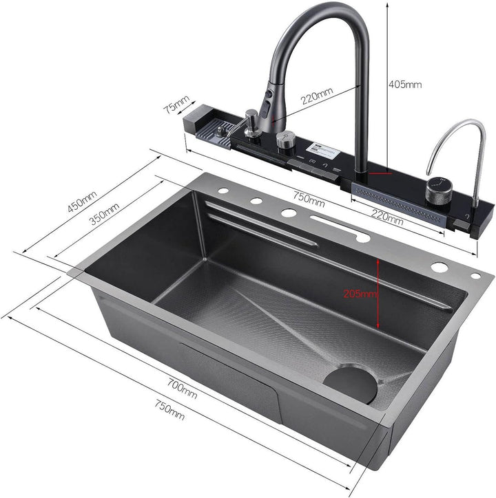 DIGITAL DISPLAY PREMIUM KITCHEN WATERFALL FAUCETS SINK SET