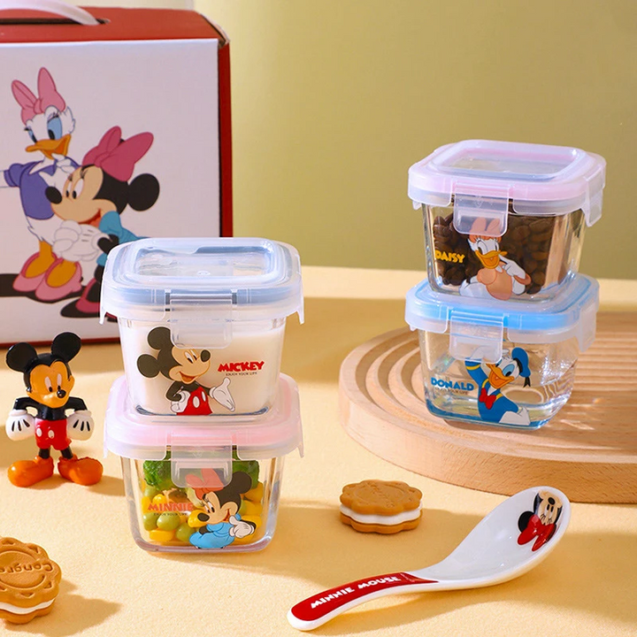DISNEY MINNIE & MICKEY MOUSE GLASS LUNCH BOX 4 PIECES WITH LID
