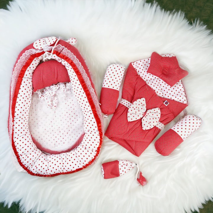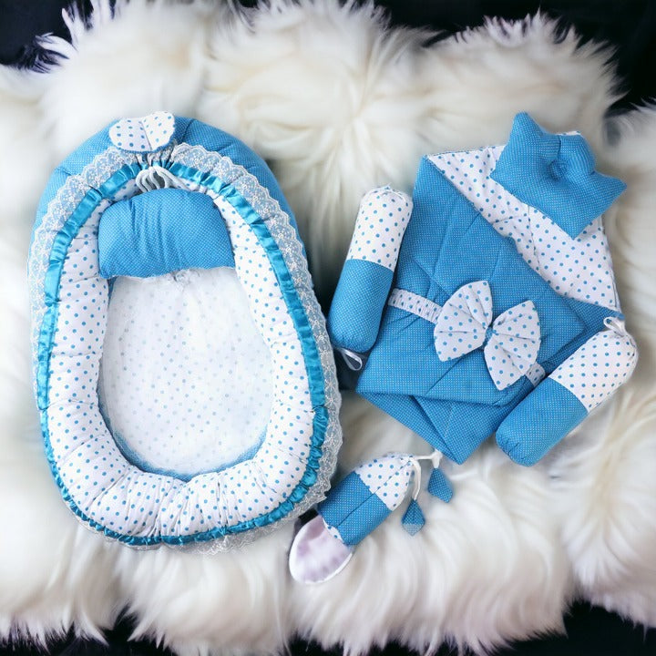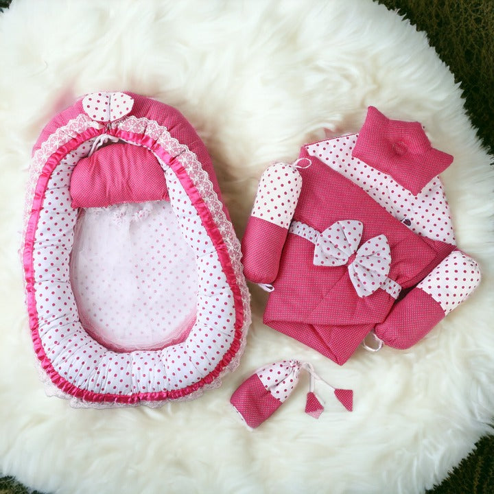 Discover the ultimate Baby Snuggle Bed Set 9PCs. Provide warmth and comfort for your child with this soft and portable infant care set. Perfect for bed or on the go, it's the ideal travel companion. Keep your little one snug and secure wherever you are. Order now and give your baby the gift of cozy bliss.