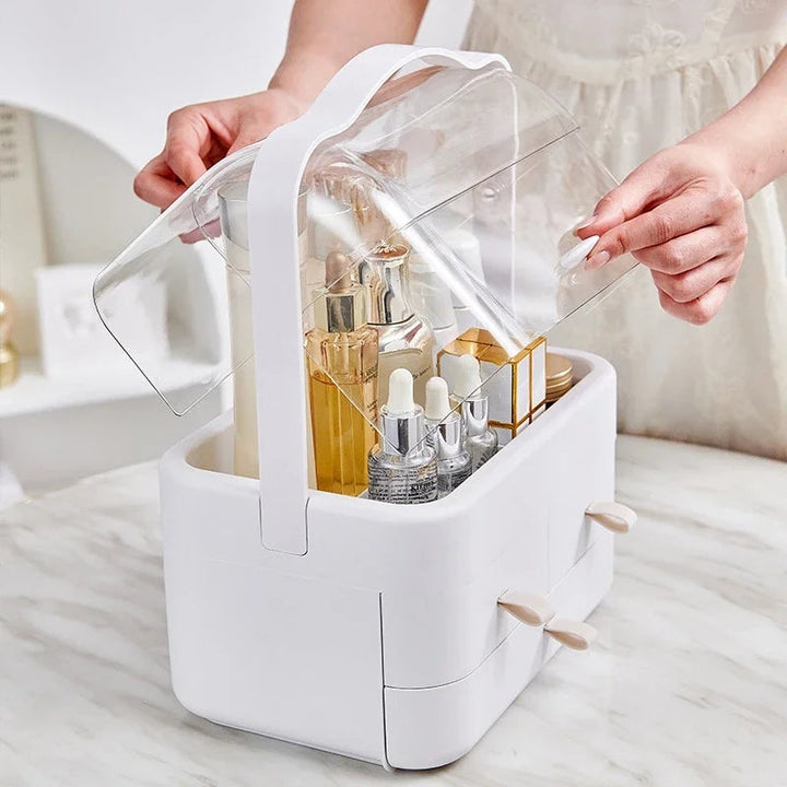Efficiently organize your makeup collection with our DOUBLE DOORS COSMETIC ORGANIZER. With double doors for easy access and plenty of space for all your cosmetics, this organizer is essential for any beauty enthusiast. Keep your vanity clutter-free and your makeup easily accessible with our high-quality organizer.