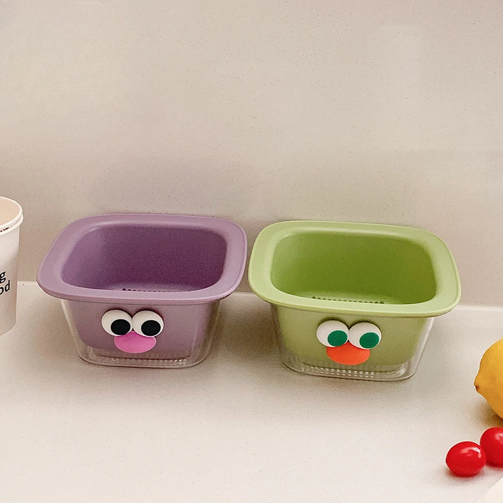 DOUBLE DRAIN BASKET FRUIT WASHING TRAY MINI KITCHEN STORAGE BOX