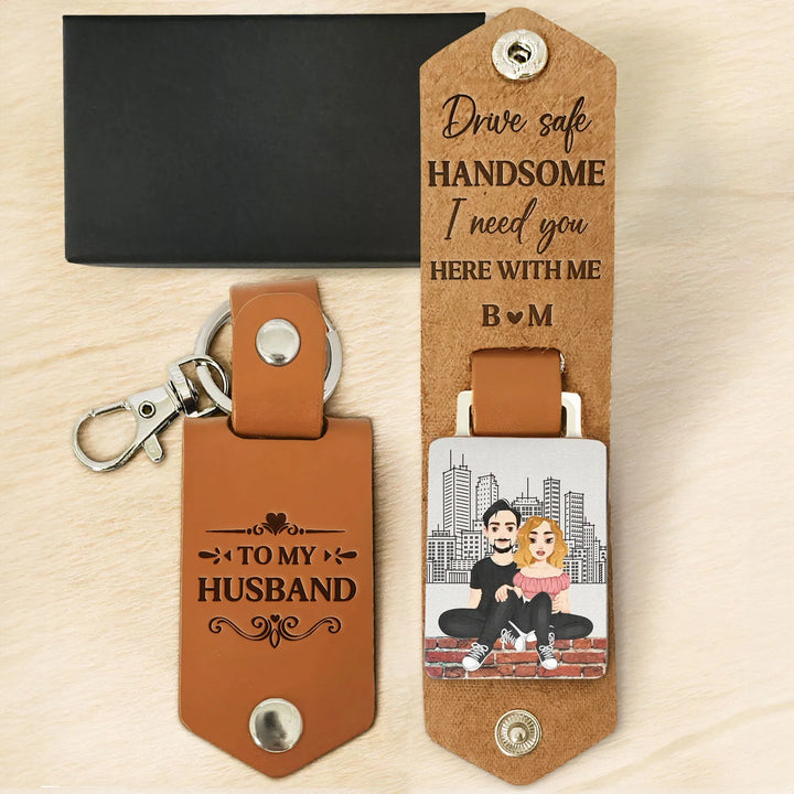 Drive Safe Handsome I Need You - Personalized Leather Keychain
