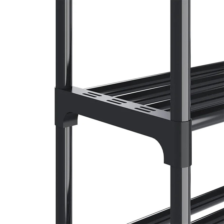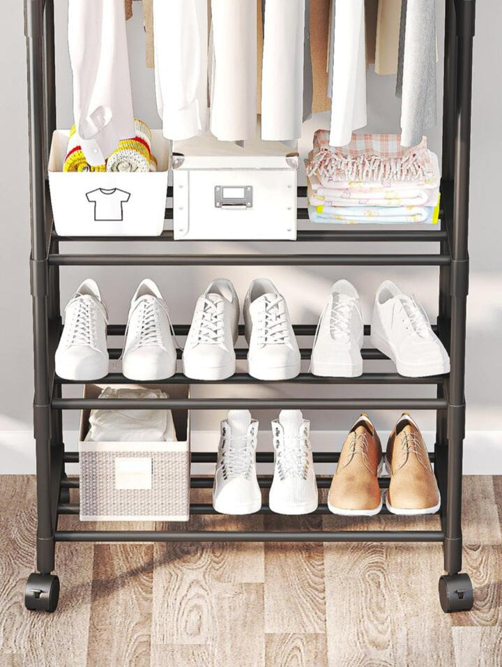 The DUAL POLE CLOTHES RACK provides double the hanging space for your wardrobe. With two adjustable poles, easily fit longer garments and maximize storage. Made from durable materials, this rack is a reliable and efficient solution for organizing your clothing.