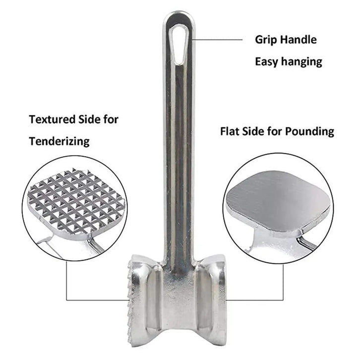 This DUAL SIDED MEAT HAMMER is a versatile and practical kitchen tool, designed to make your meat preparation tasks easier and more efficient. With two sides, one for tenderizing and the other for pounding, it can handle a wide range of meats for delicious and evenly cooked dishes. Made from high-quality materials, it is durable and built to last. Perfect for any home cook or professional chef looking to elevate their culinary skills.