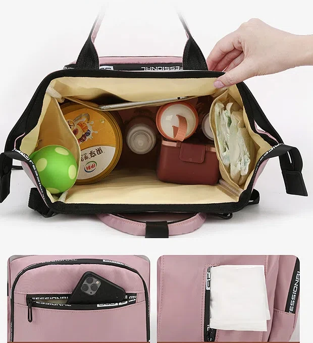 This Fashionable Mommy Backpack offers both style and functionality for busy moms on-the-go. With a spacious design and large capacity, it provides ample storage for all your travel essentials. Stay organized and stylish with this convenient travel bag.