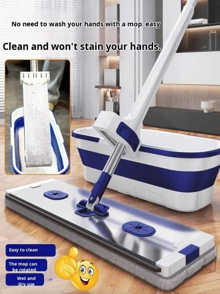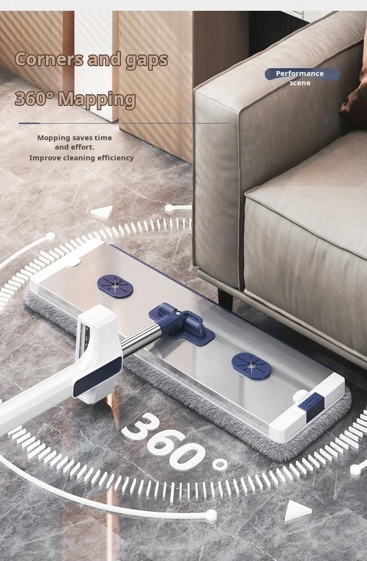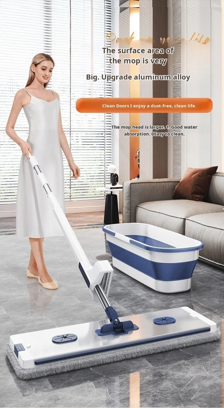 FLAT SQUEEZE MOP ALUMINUM ALLOY HAND-FREE WRINGING MICROFIBER WET/DRY MOP