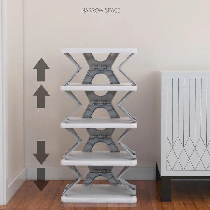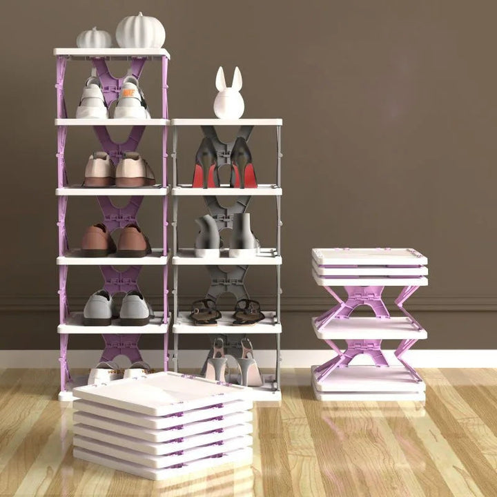 This foldable shoe rack offers compact and practical shoe storage for any home. With its easy foldable design, it can be stored away when not in use, saving space. Made from durable materials, it can hold a large number of shoes. Keep your shoes organized and easily accessible with this convenient solution.