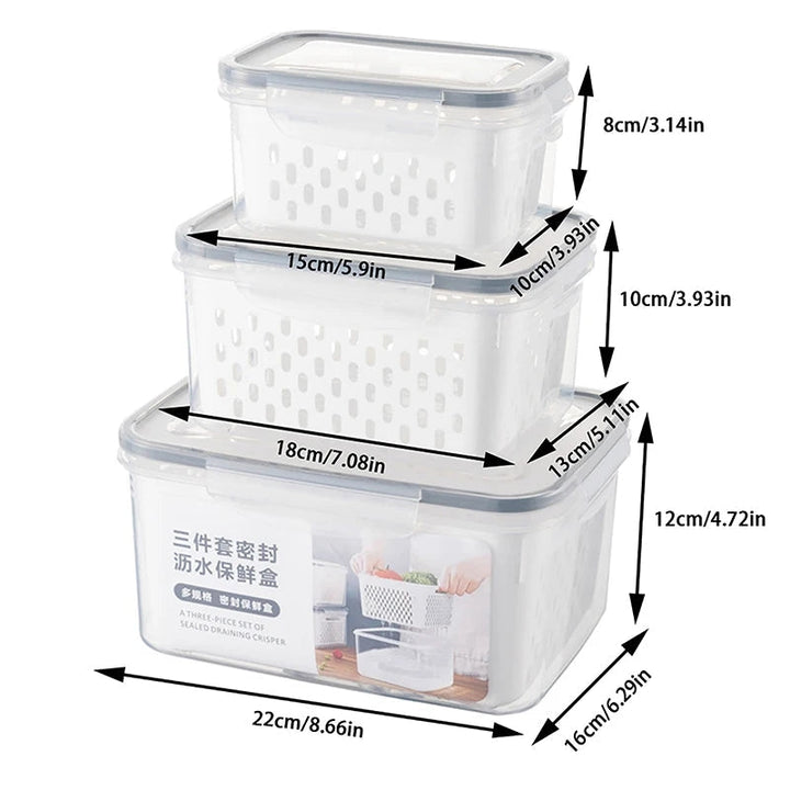PACK OF 3 FOOD PRESERVATION BOX WITH DRAIN BASKET