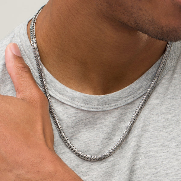 Style yourself with a timeless classic! Our Silver Stainless Steel 4mm Foxtail Chain is perfect for everyday wear. All fashion savvy shoppers know that trends come and go, but nothing beats the enduring elegance of a classic. This unique piece is crafted with an exquisite stainless steel foxtail design and it's just the right size, measuring in at 4mm thick. And you won't have to worry about oxidation or tarnishing - no matter what the climate - thanks to its stainless metal construction. Now you can recreate iconic looks from musical legends or develop your own look with our range of silver jewelry options. Indulge in a classic piece for all occasions and express yourself every time you step out in style!