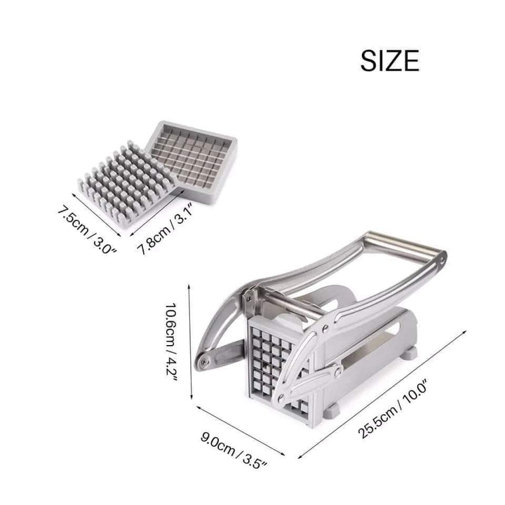 Efficiently cut potatoes into perfect fries every time with our FRENCH FRIES CUTTER. Its easy-to-use design and sharp blades ensure precise and uniform cuts. Save time and effort in the kitchen with this must-have tool for any fries lover. Upgrade your cooking game today!
