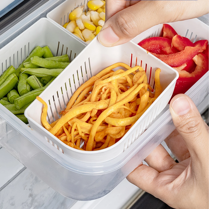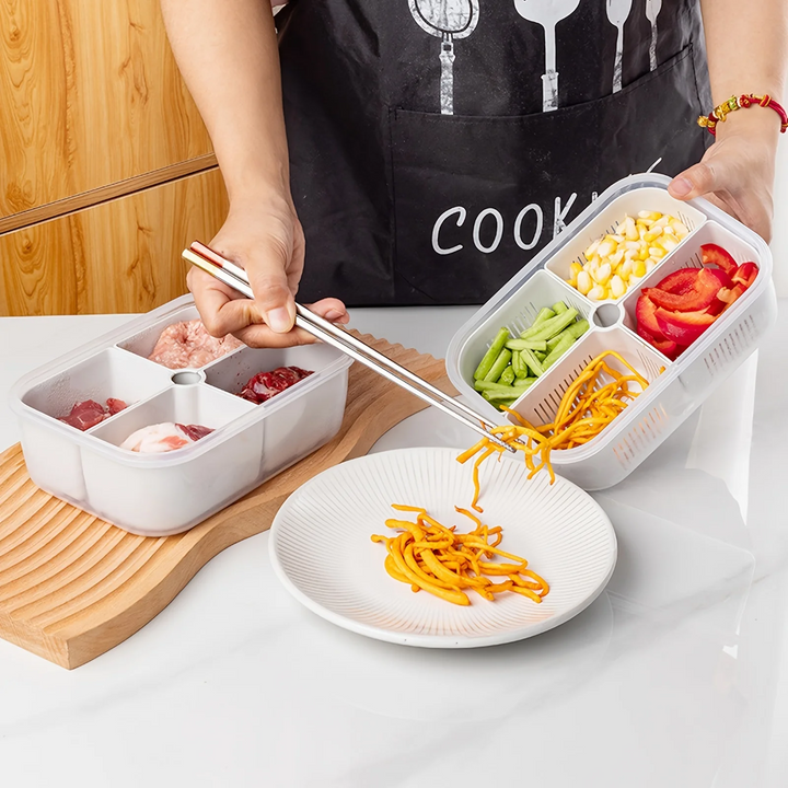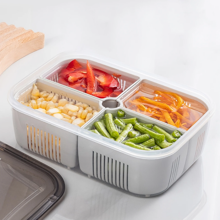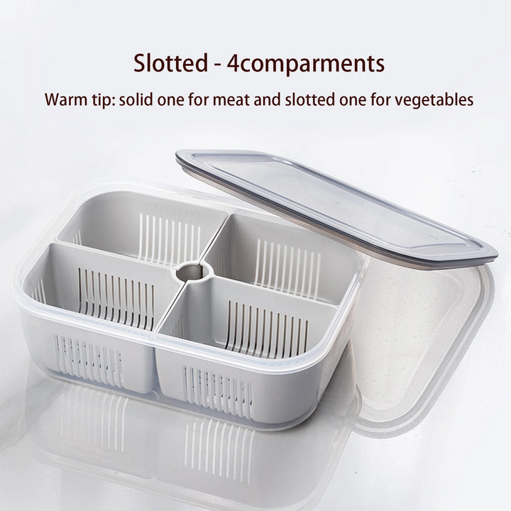 FRIDGE ORGANIZER, DIVIDED VEGETABLE & MEAT BOX, FOOD-GRADE, MICROWAVEABLE.