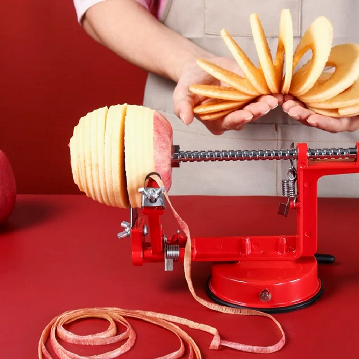 This hand-cranked stainless steel fruit peeler makes peeling and removing pits a breeze. Its 3-in-1 design allows for efficient peeling, coring, and slicing, while the hand crank makes it easy and comfortable to use. Upgrade your fruit peeling game with this durable and versatile tool.