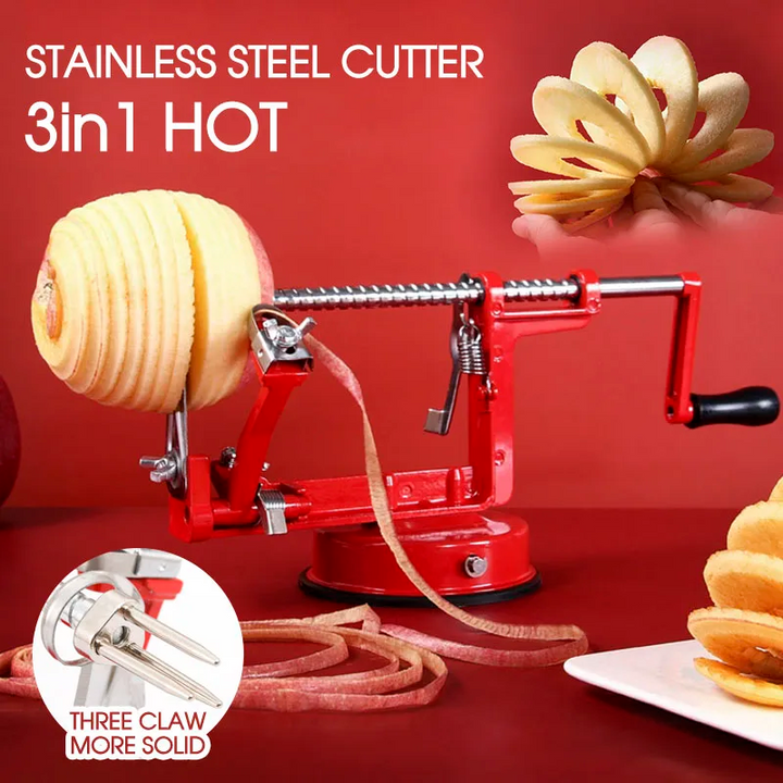 HAND CRANKED 3-IN-1 STAINLESS STEEL FRUIT PEELER, EASY TO USE AND REMOVE PITS