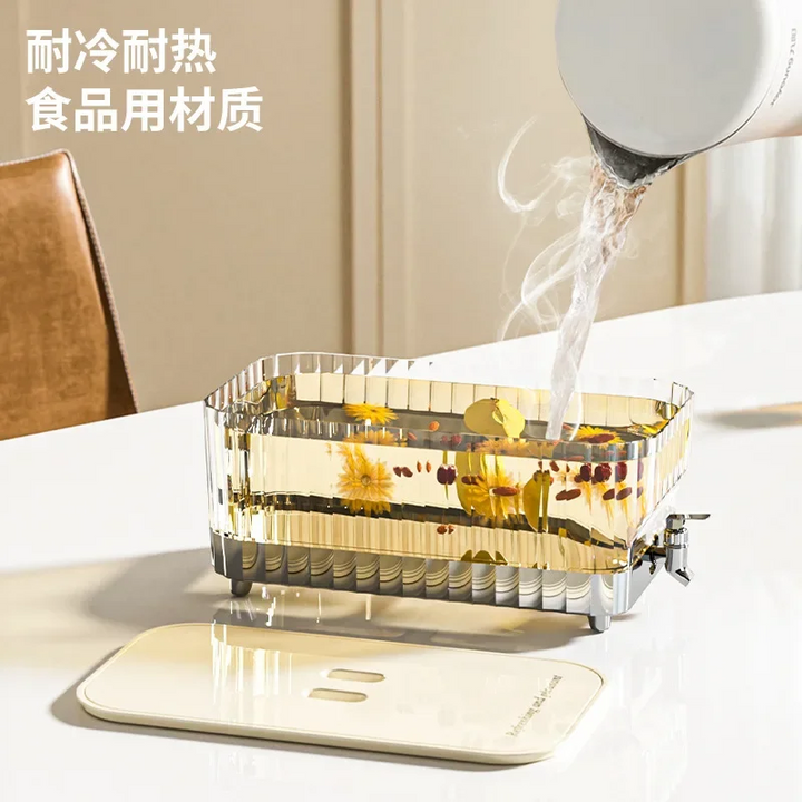 This large-capacity refrigerator cold water jug features a convenient faucet for easy access to refreshing beverages. With its ice and juice bucket, you can keep your drinks cold and enjoy them anytime. No more trips to the kitchen for a refill. Stay hydrated with the ultimate in convenience.