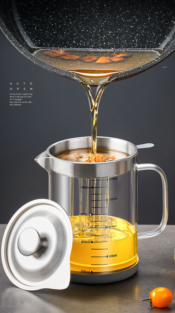 HIGH-TEMPERATURE RESISTANT GLASS OIL FILTER POT - 1200ML