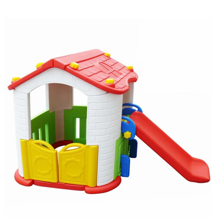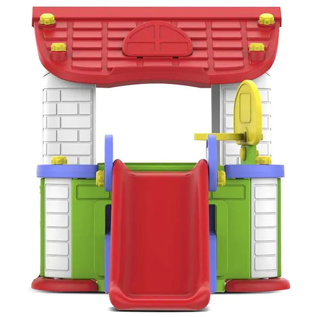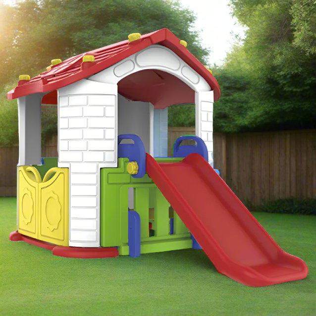 Activity Playhouse with Slide, the ultimate haven for energetic toddlers! Crafted with care from Injection Molded HDPE Plastic, this playhouse ensures both durability and safety for your little ones.