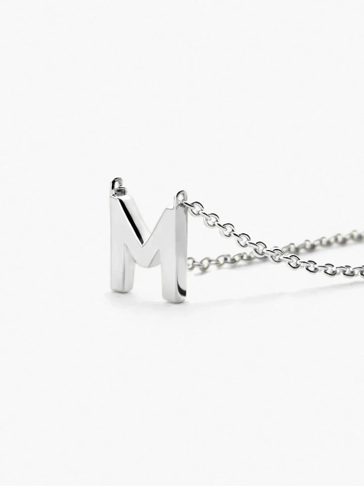 Your favorite Letter Necklace now comes is shiny sustainable silver, this silver version features a cable link chain and an uppercase initial.