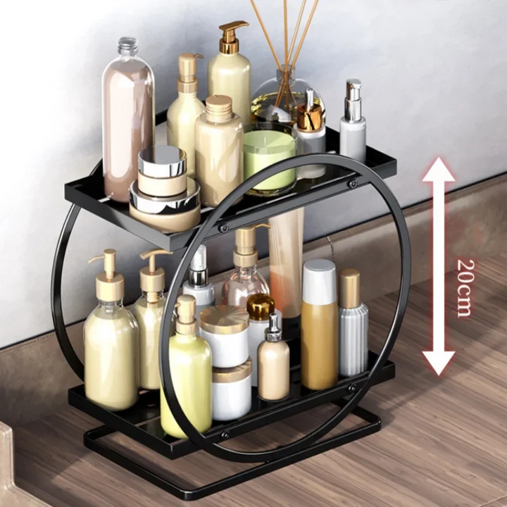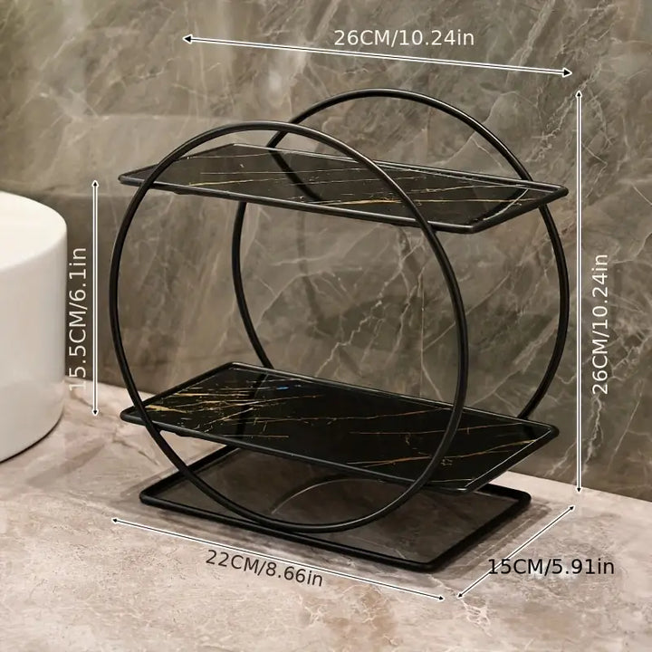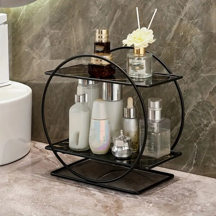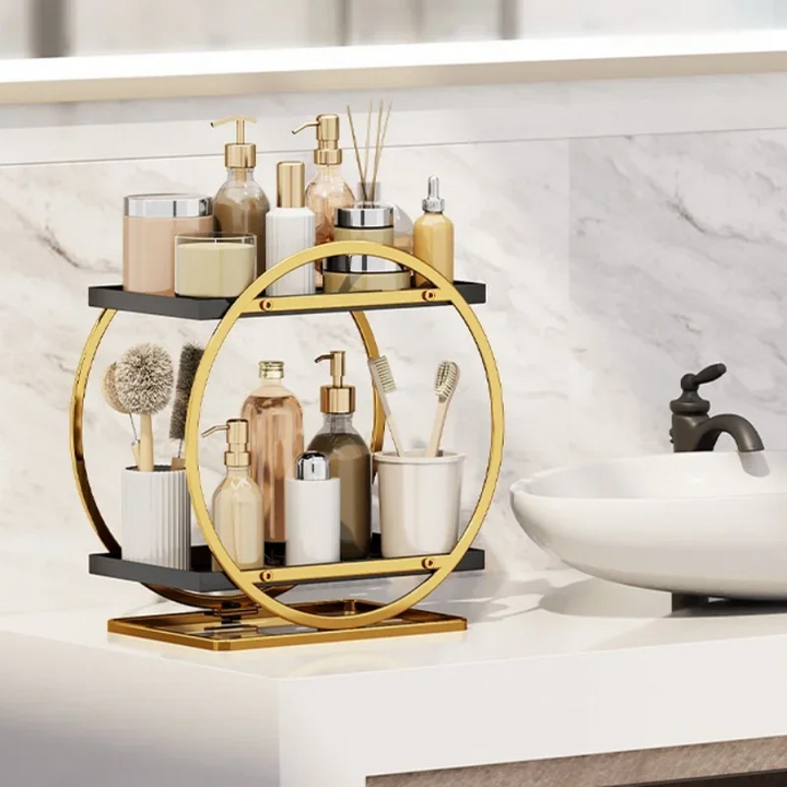 Efficiently organize your cosmetics with our Light Luxury Bathroom Shelf Rack. The circular shape adds a touch of elegance to your dressing table while providing ample space for your daily essentials. Stay clutter-free and maximize your bathroom's functionality. Durable and stylish, this organizer is a must-have for any bathroom.