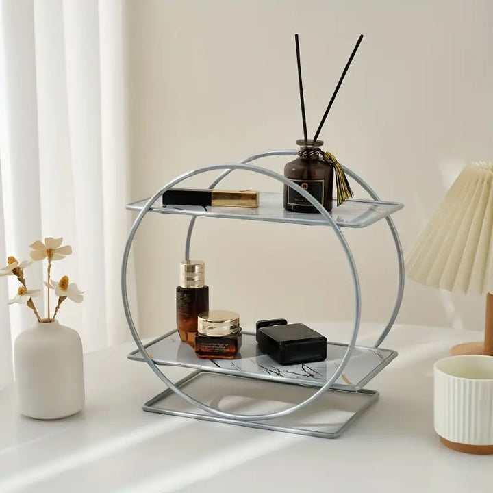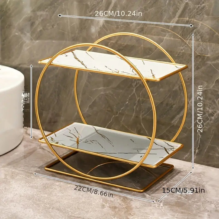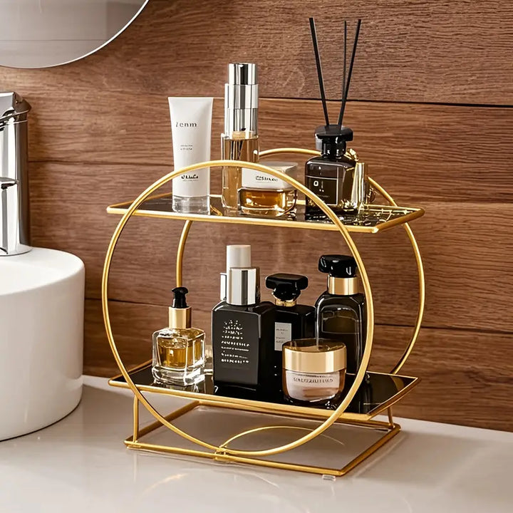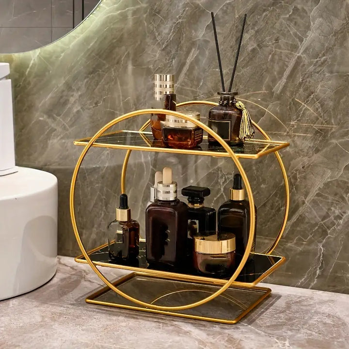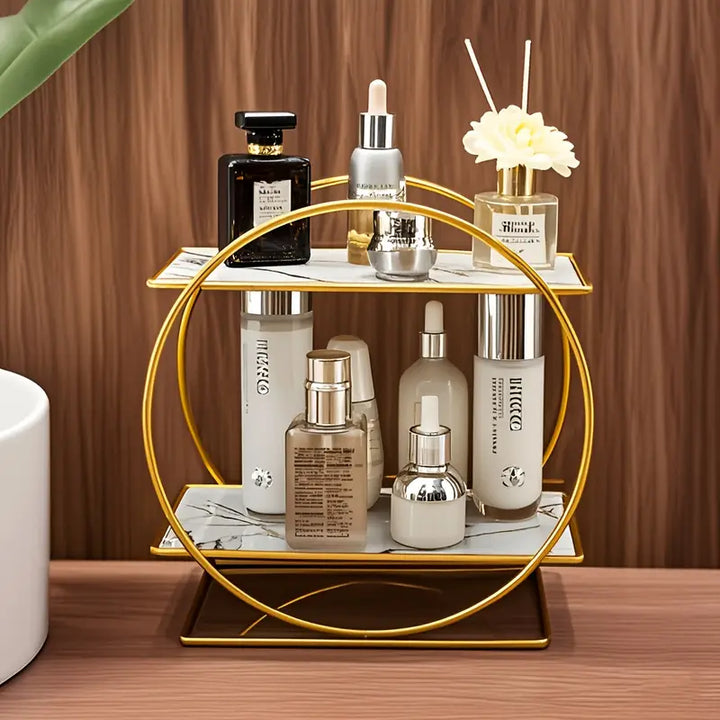LIGHT LUXURY BATHROOM SHELF RACK COSMETICS ORGANIZER FOR DRESSING TABLE - CIRCLE SHAPE