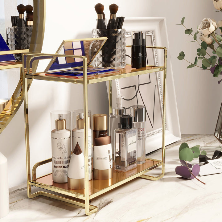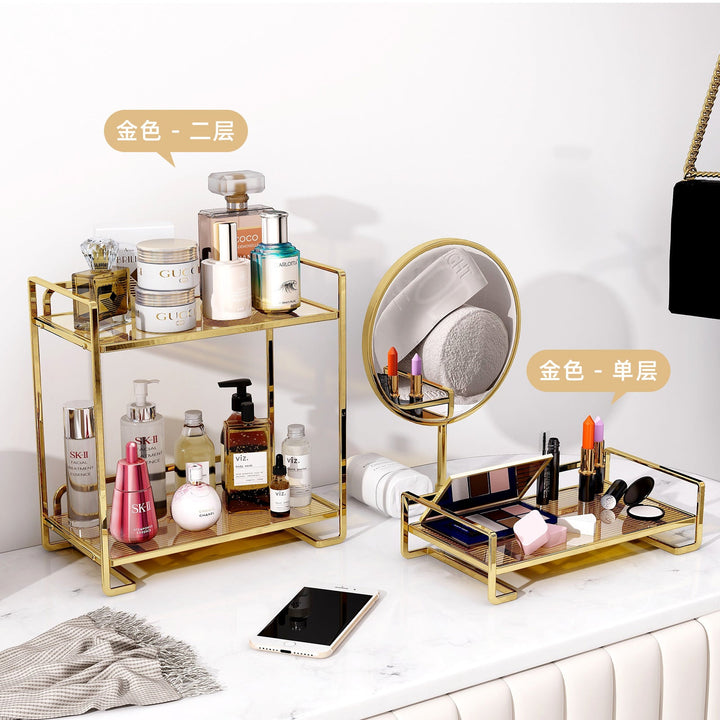 LIGHT LUXURY BATHROOM SHELF RACK COSMETICS ORGANIZER FOR DRESSING TABLE - SQUARE SHAPE