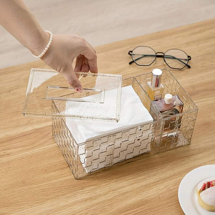 Experience the ultimate elegance and functionality with our LUXOR ACRLYLIC TISSUE BOX WITH HOLDER. Made of high-quality acrylic, this sleek tissue box also serves as a convenient holder for your everyday essentials. Keep your space clutter-free and add a touch of luxury to your everyday routine.