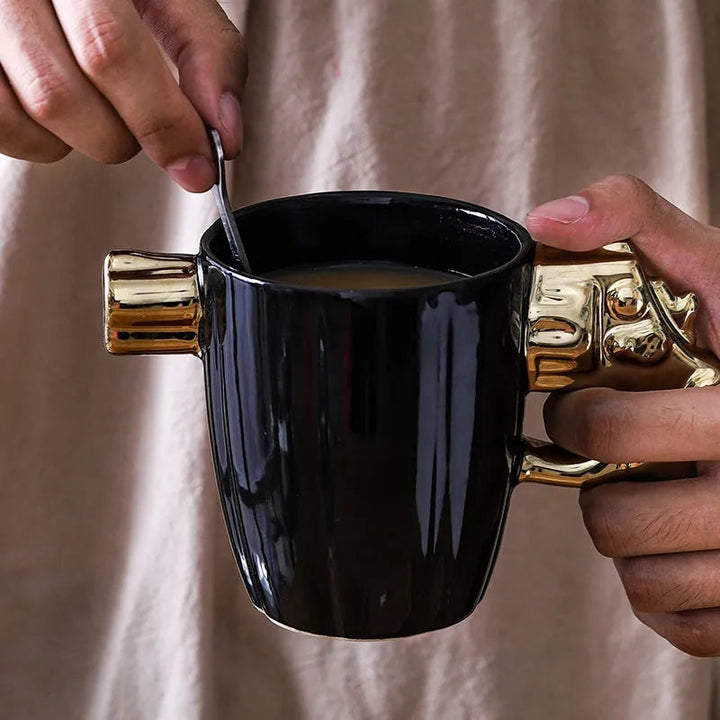 This REVOLVER SHAPE CERAMIC CUP features a unique and eye-catching design. Made of high-quality ceramic, it is durable and suitable for hot or cold beverages. Its revolver shape adds a touch of novelty to your drinking experience. Perfect for gun enthusiasts or anyone looking for a fun and distinctive cup.