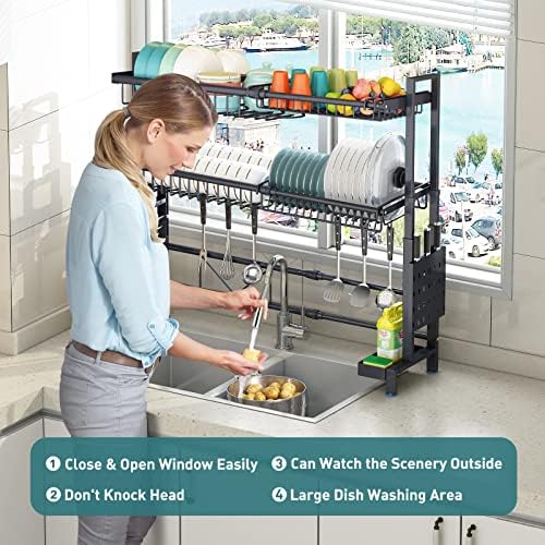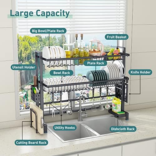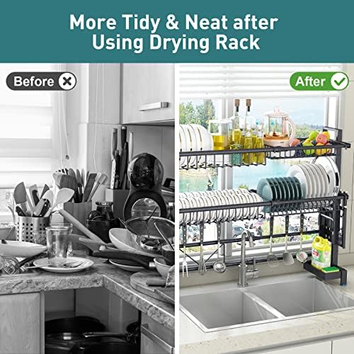 Efficiently organize your kitchen with our DUAL LAYER SHELVES OVER THE SINK RACK. Designed for easy installation, this rack provides extra storage space for all your essentials. With two layers of sturdy shelves, this rack maximizes vertical space and keeps your sink area clutter-free.
