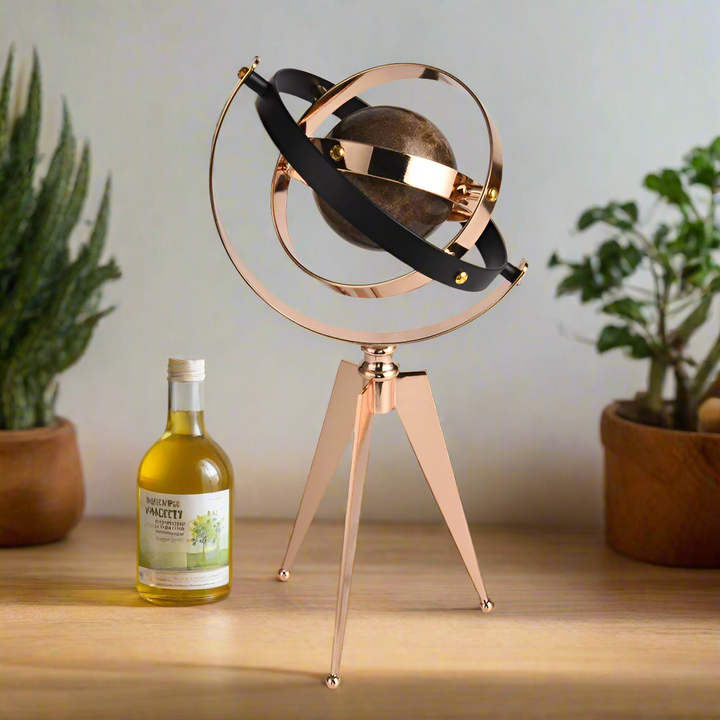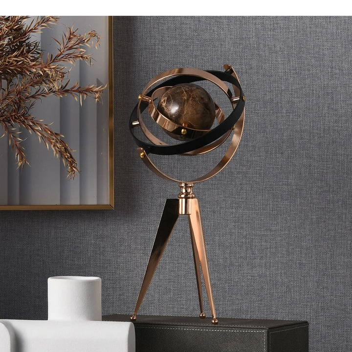 Enhance your decor with our METAL GLOBE CUTOUT MARBLE SPINNER DECORATIVE FIGURINE. Crafted with precision, the metal globe cutout design adds a modern touch while the marble spinner provides a unique and elegant aesthetic. Perfect for any tabletop or shelf display.