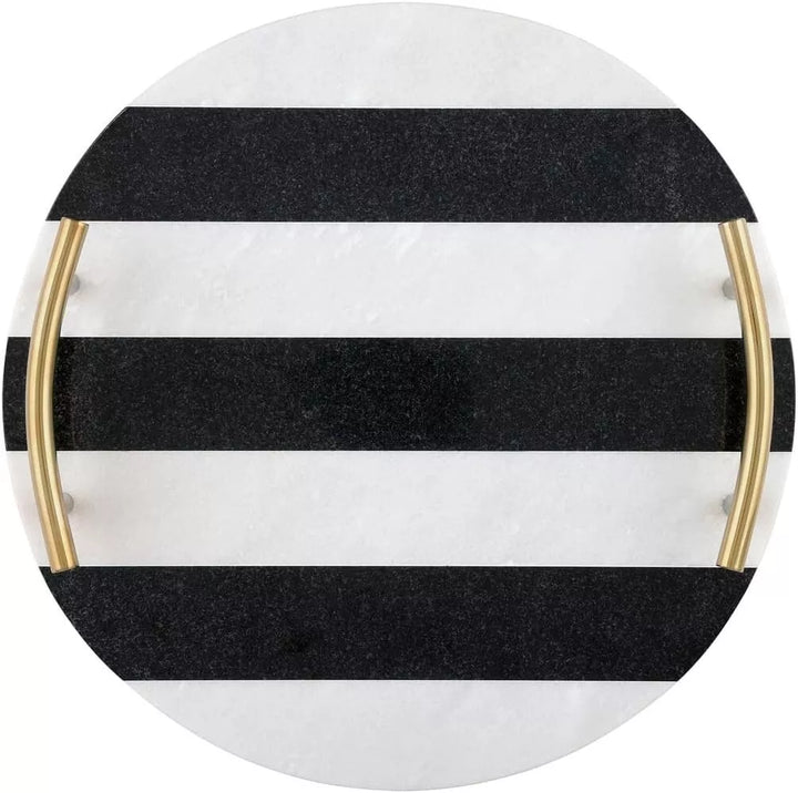MODERN B&W MARBLE GRANITE TRAY WITH GOLD HANDLE