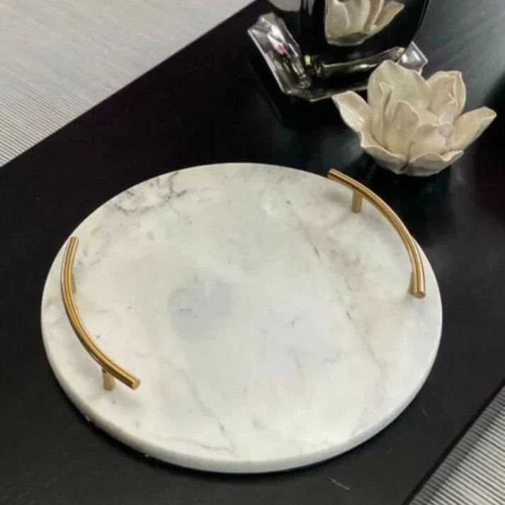 MODERN WHITE MARBLE TRAY WITH GOLD HANDLE