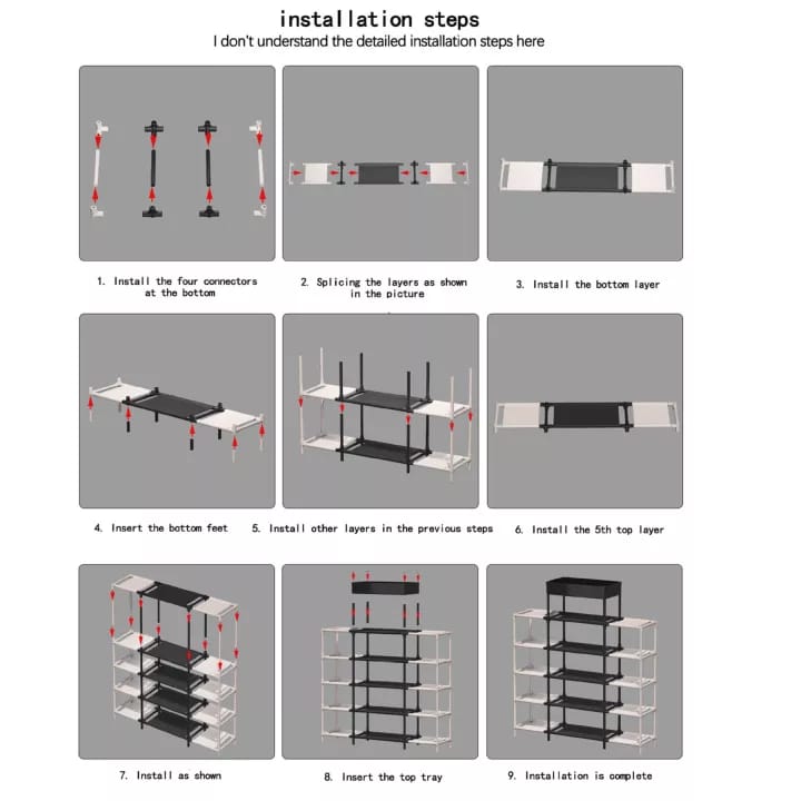 This multi-layered shoe rack is the perfect solution for organizing your shoe collection. With its multiple layers, it provides ample space for neatly storing all your shoes, keeping them easily accessible and reducing clutter. Its durable design ensures long-lasting use, making it a practical and efficient addition to any home.